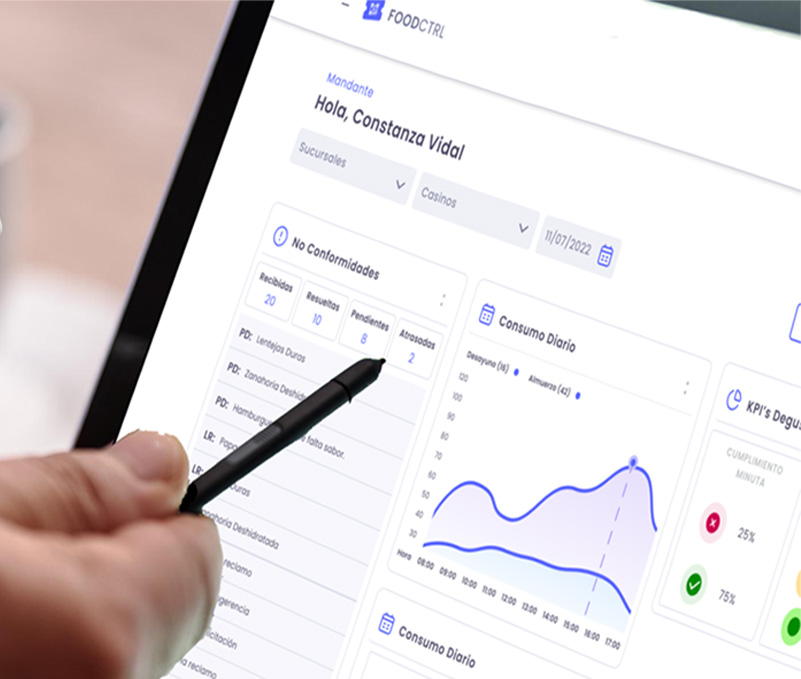 Controlamos la calidad del servicio; midiendo las frecuencias, el cumplimiento del menú, la satisfacción de las preparaciones, seguimiento a las no conformidades, entregando datos y KPI´S.